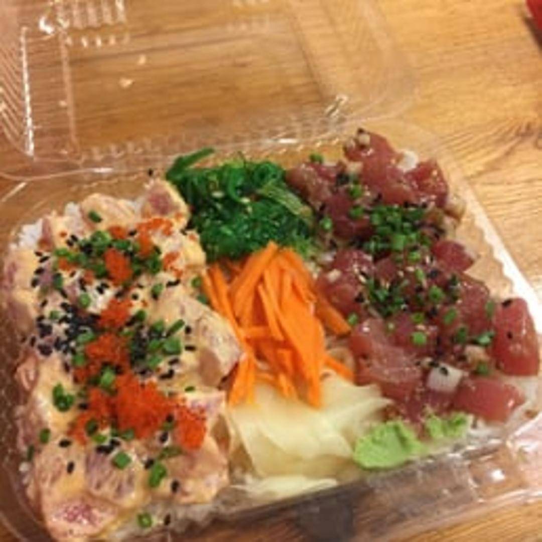 A vibrant and refreshing Hawaiian-inspired bowl featuring generous cubes of sushi-grade tuna, meticulously seasoned with a savory blend of soy sauce, toasted sesame oil, fresh ginger, and crisp green onions. This wholesome and flavorful dish offers a perfect balance of textures and a taste of the ocean's freshest bounty.