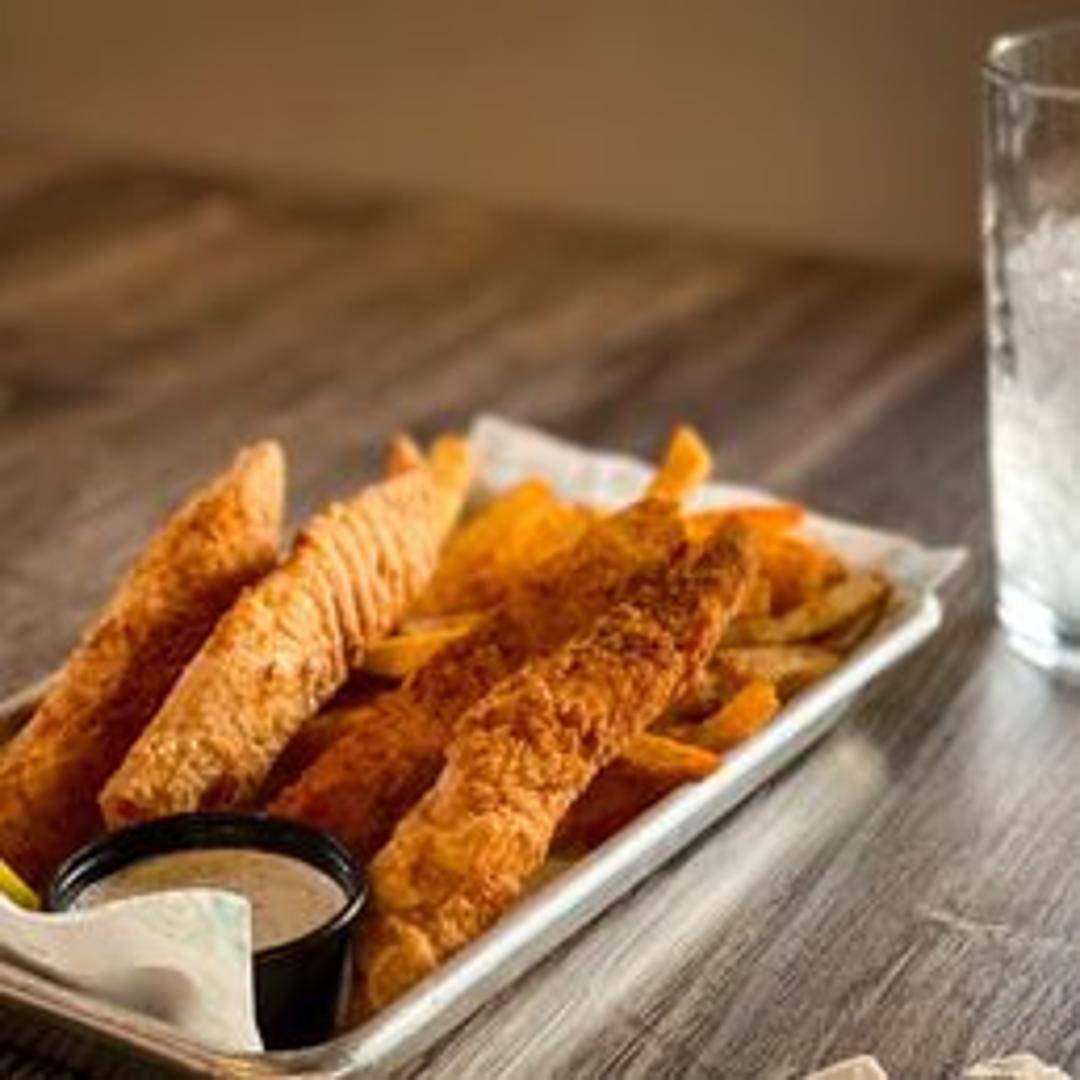 A timeless classic featuring generous fillets of white fish, delicately battered and fried to a golden crisp perfection. Accompanied by a hearty portion of perfectly seasoned, golden-brown french fries. Served with a side of zesty tartar sauce and a lemon wedge, embodying the quintessential comfort of a seafood staple.