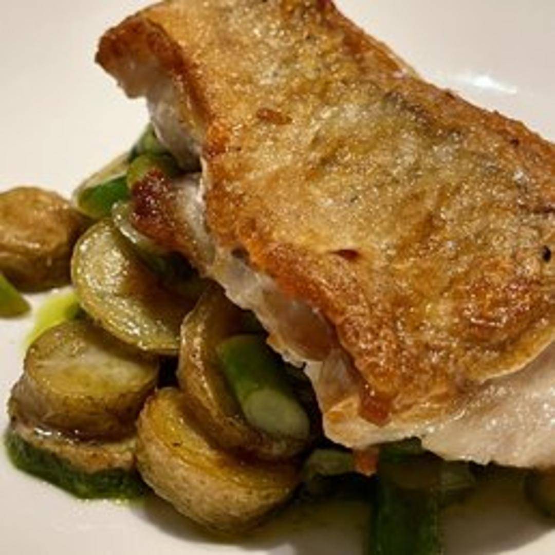 Exquisitely seared tilefish, celebrated for its firm, flaky texture and delicate, sweet flavor. Cooked to a golden perfection, the searing technique locks in the moisture and creates a sublime crust, presenting a light yet satisfying seafood entree that often pairs beautifully with seasonal accompaniments and a bright, complementary sauce.