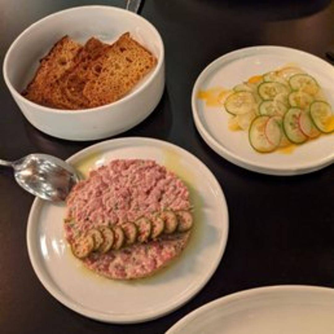 Delicately thin slices of pristine, sushi-grade fluke are artfully arranged and presented raw. Dressed simply to highlight its natural sweetness, this exquisite crudo is elevated with a bright citrus emulsion, a drizzle of premium extra virgin olive oil, and a whisper of flaky sea salt, offering a refreshing and refined appetizer.