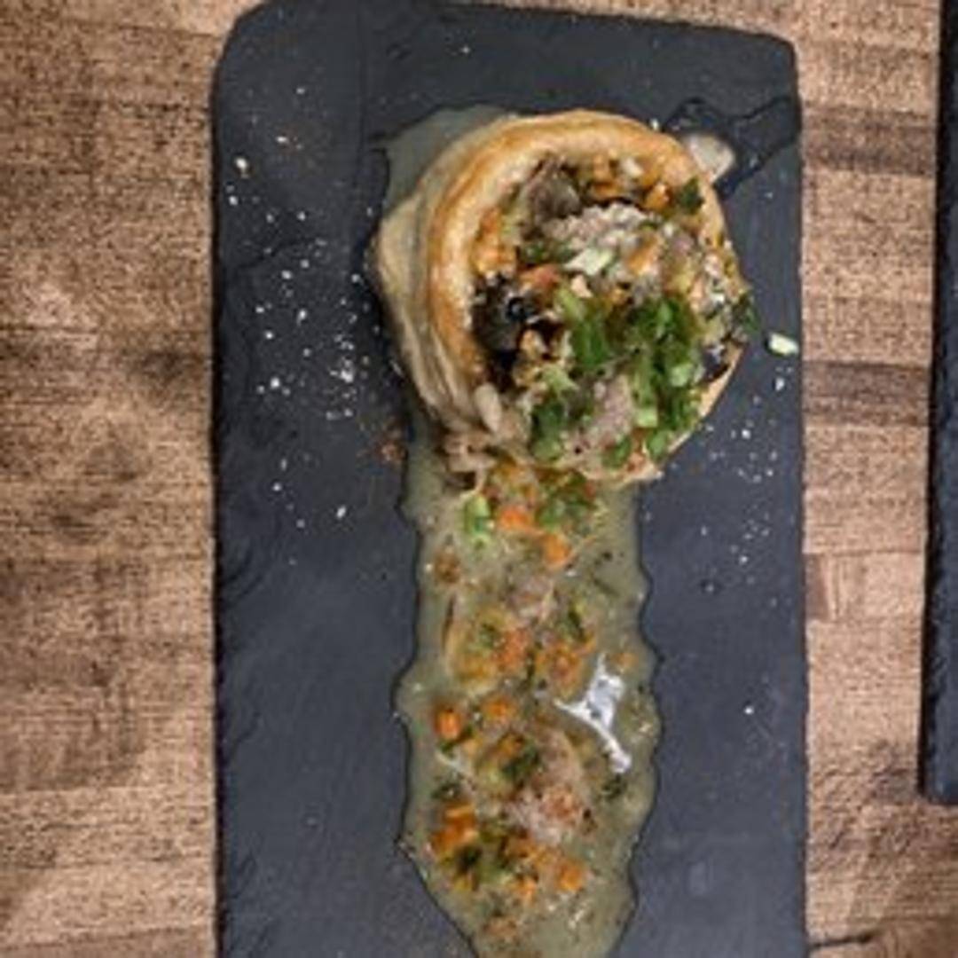 Classic French appetizer of snails baked in garlic herb butter. Served with crusty bread for dipping.