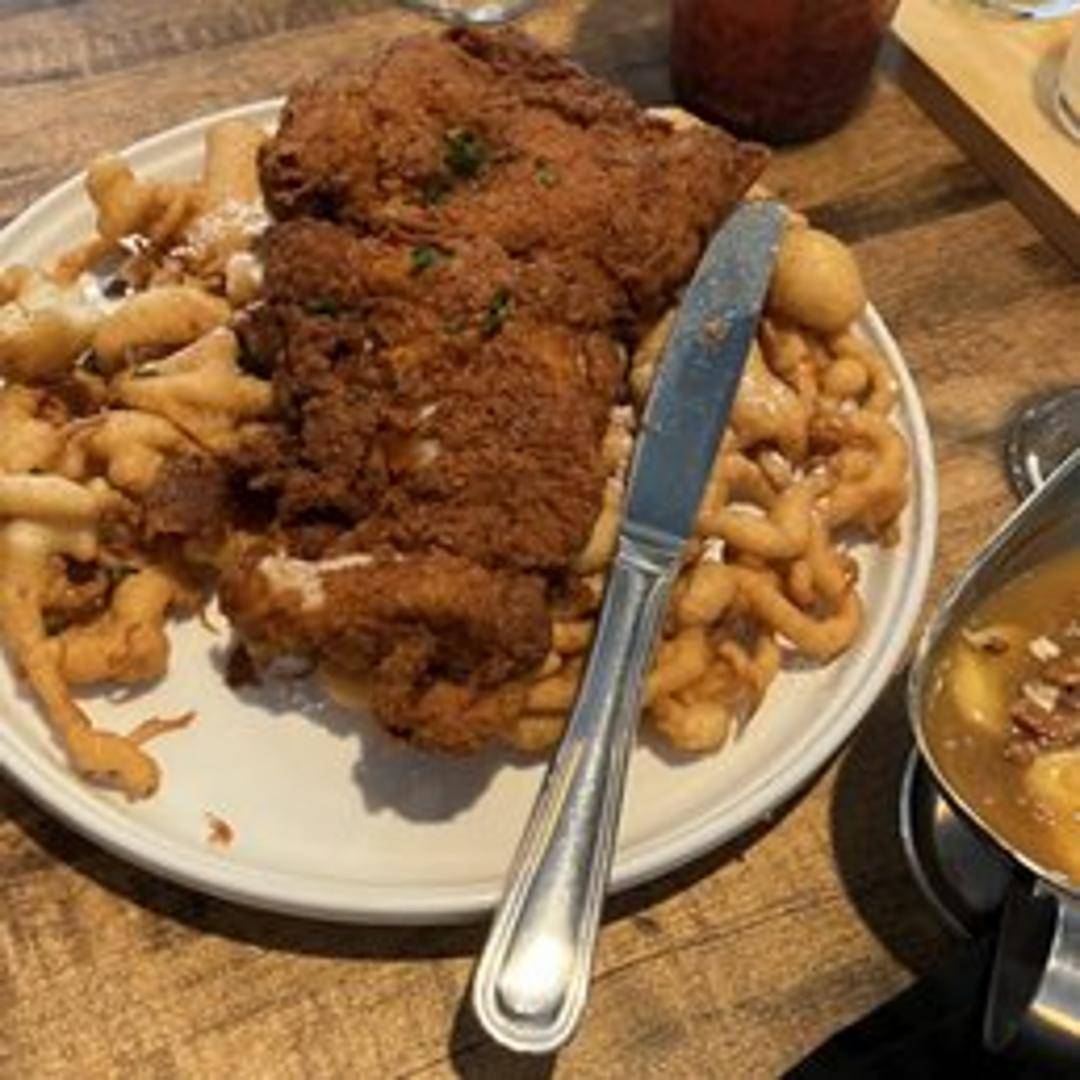 Crispy and golden-brown fried chicken, seasoned with a blend of savory spices. Served hot and juicy.