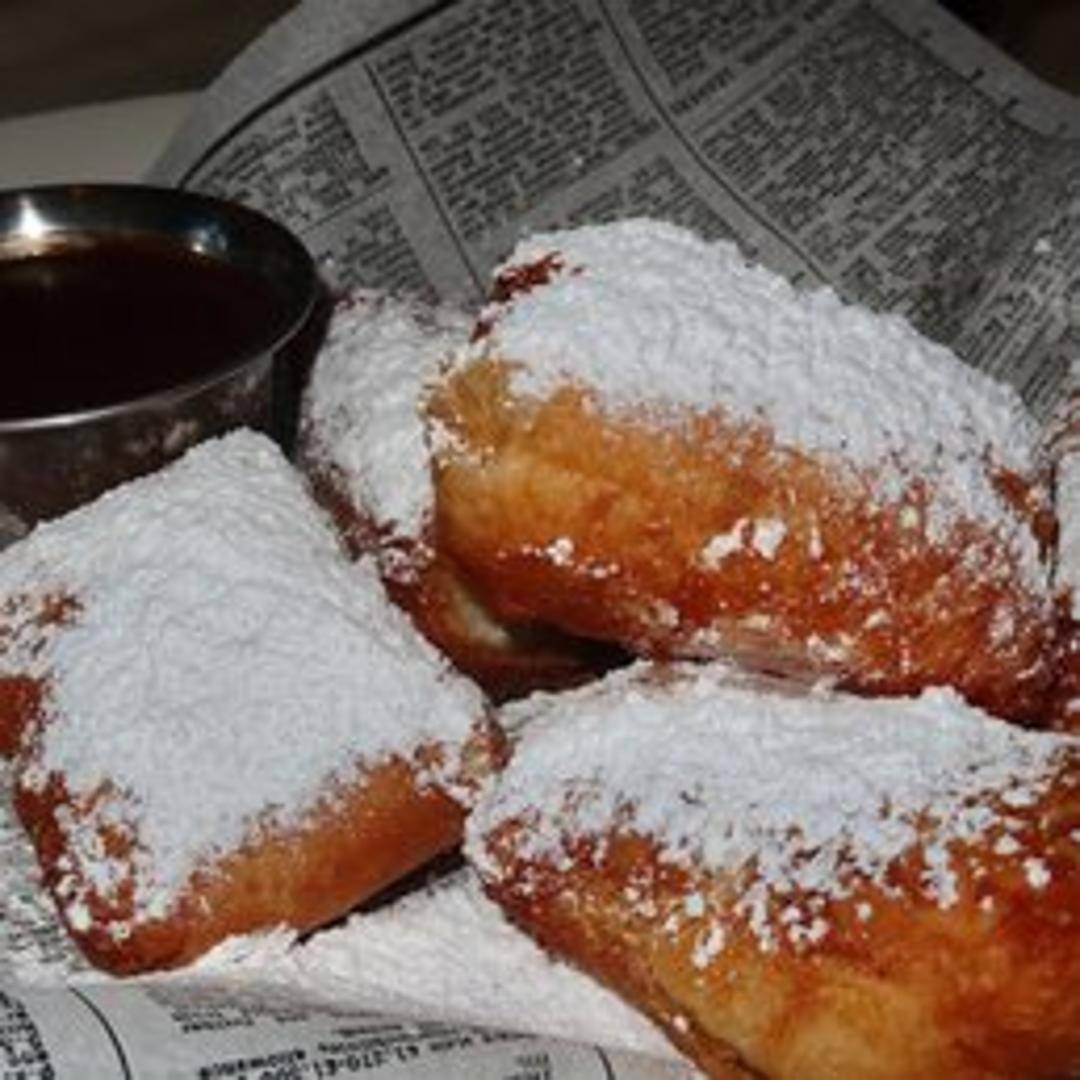 Pillowy, deep-fried fritters dusted generously with powdered sugar. Served warm.