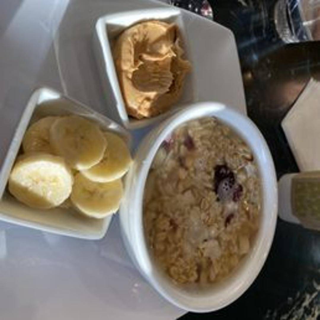 A warm and hearty bowl of traditional oatmeal, prepared with your choice of milk or water. Customize with optional toppings like brown sugar, nuts, fruit, and seeds.