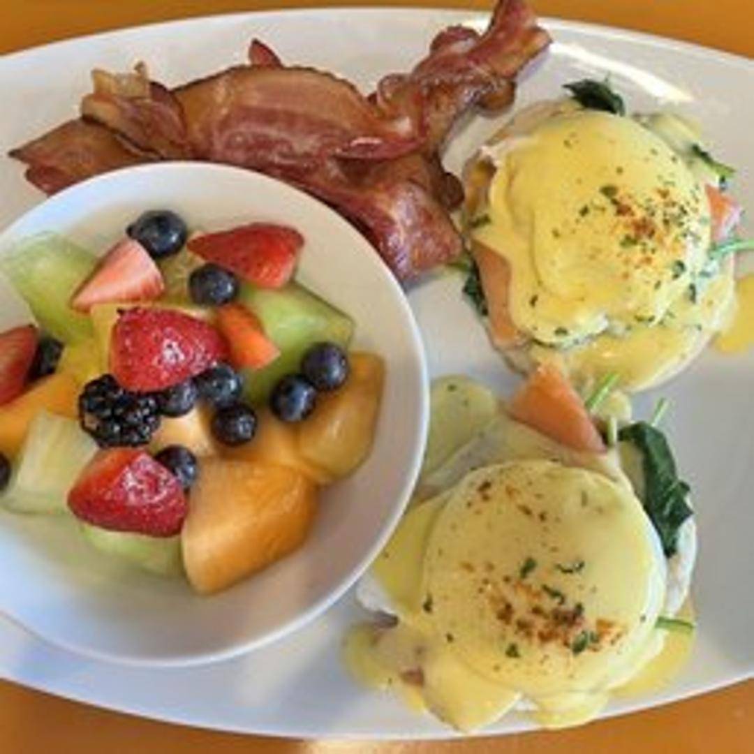 An elevated twist on a brunch favorite, our Salmon Benedict features perfectly poached eggs nestled atop tender, flaky salmon fillets, all resting on a toasted English muffin. Crowned with a rich, velvety hollandaise sauce, this dish offers a luxurious and satisfying start to your day at The Executive Diner.