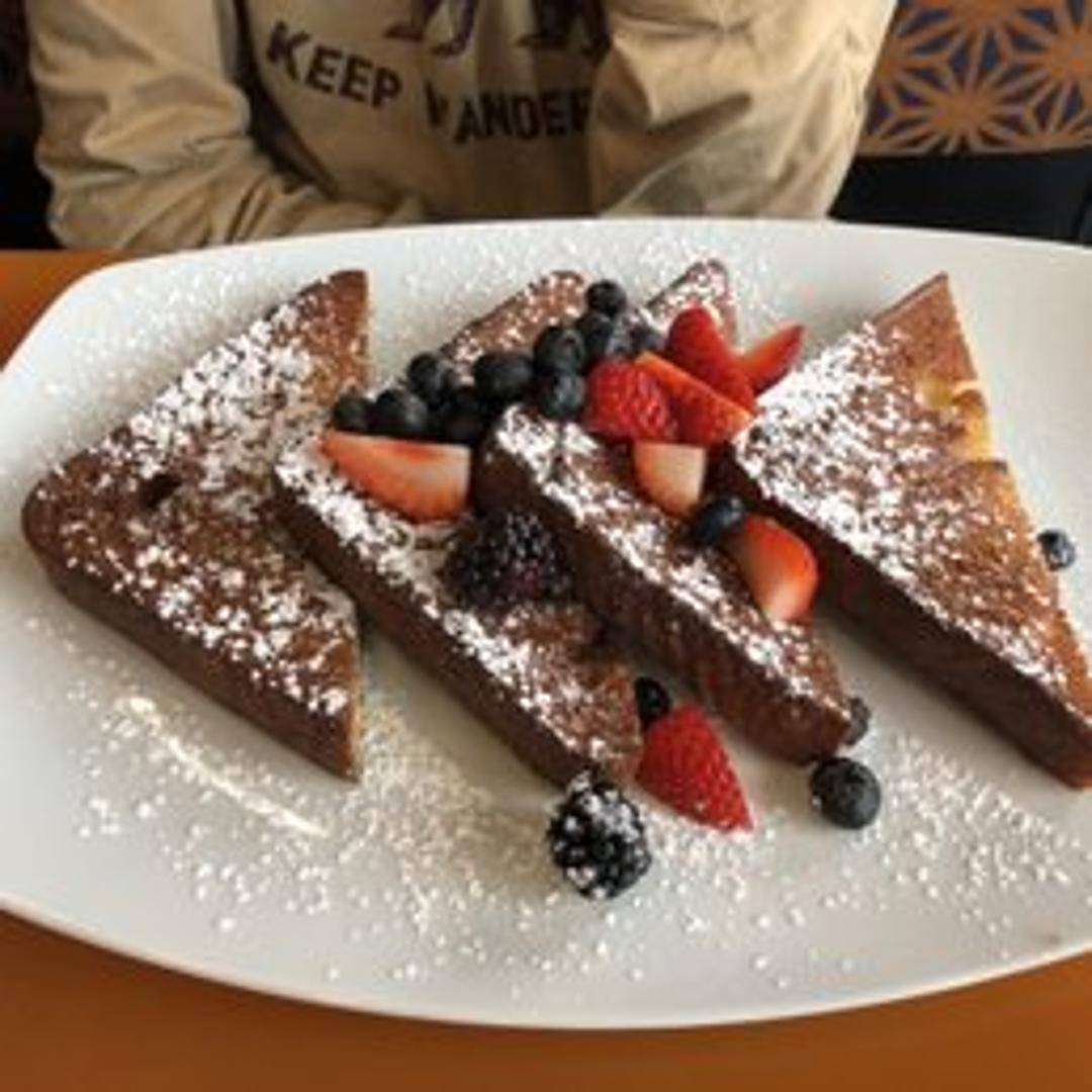 Indulge in our classic French Toast, featuring thick slices of bread dipped in a luscious, sweet egg batter infused with hints of vanilla and cinnamon. Each slice is grilled to a golden-brown perfection, offering a delightful combination of a custardy interior and lightly crispy edges. A timeless breakfast favorite, served warm and ready to be customized with your choice of toppings.