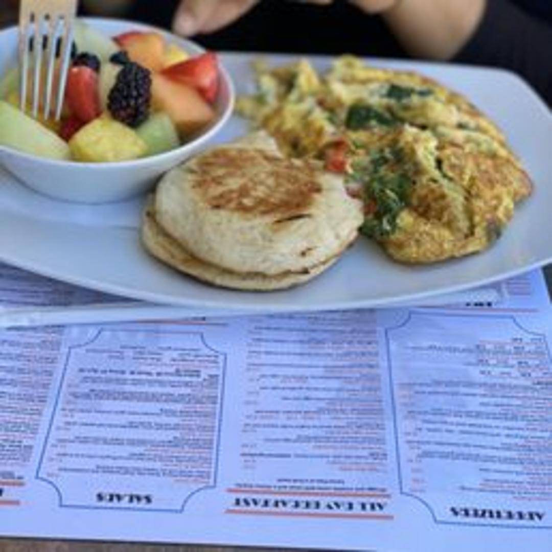 Experience the wholesome goodness of the countryside with our hearty Farm Omelet. This robust omelet is generously filled with a medley of farm-fresh ingredients, including crisp bell peppers, sweet onions, savory diced ham, and melted cheddar cheese, all encased in perfectly cooked fluffy eggs.