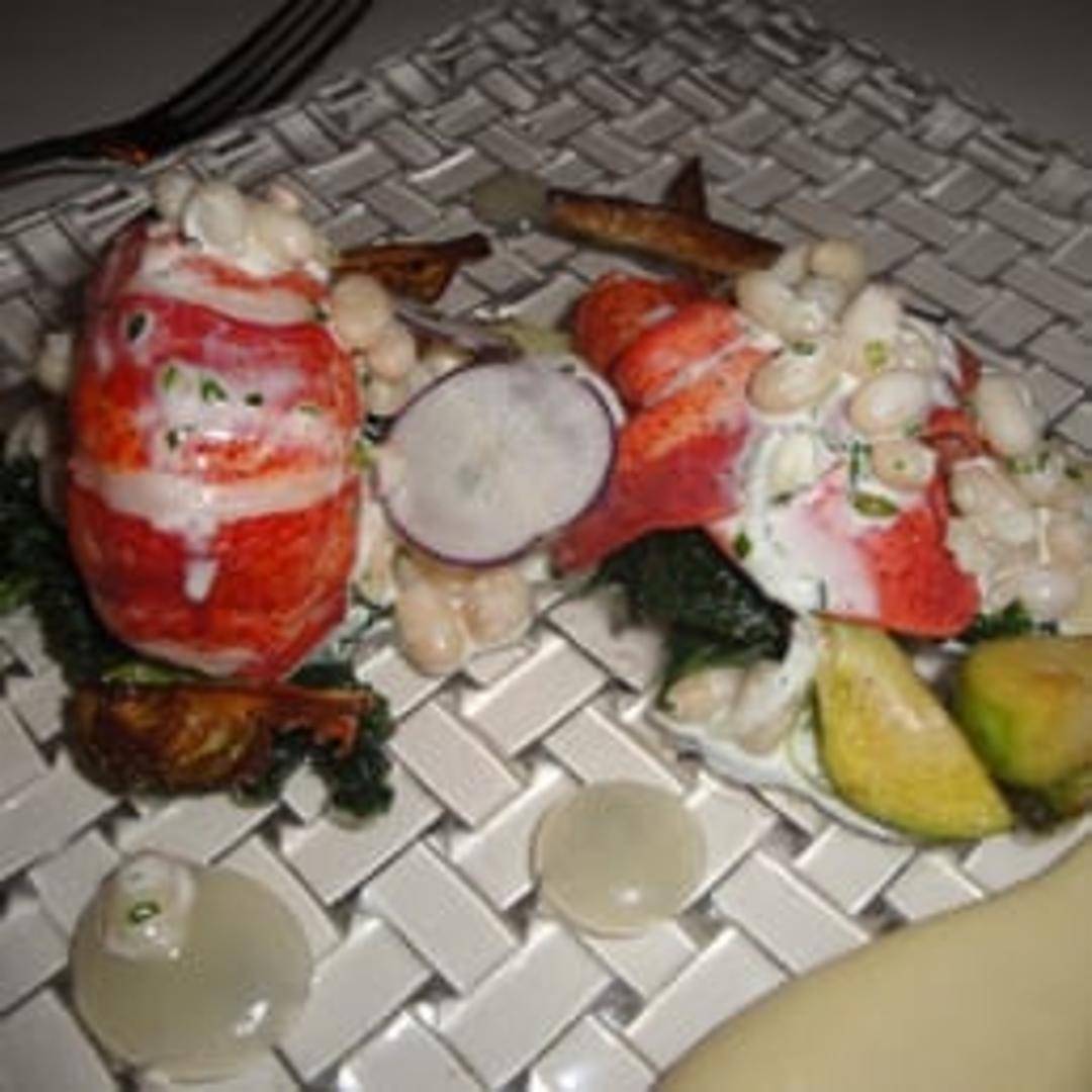 Succulent lobster, gently poached in clarified butter to preserve its natural sweetness and create a luxurious texture. Enhanced with aromatic herbs and spices. Served with complementary elements such as delicate vegetables, citrus accents, and a light, flavorful sauce.