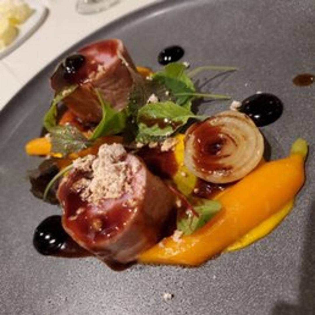 Tender and succulent veal prepared with culinary artistry. This dish showcases the natural richness of the veal, complemented by carefully chosen seasonal vegetables and a refined sauce that enhances its delicate flavor. Prepared with classic techniques and presented with elegance.