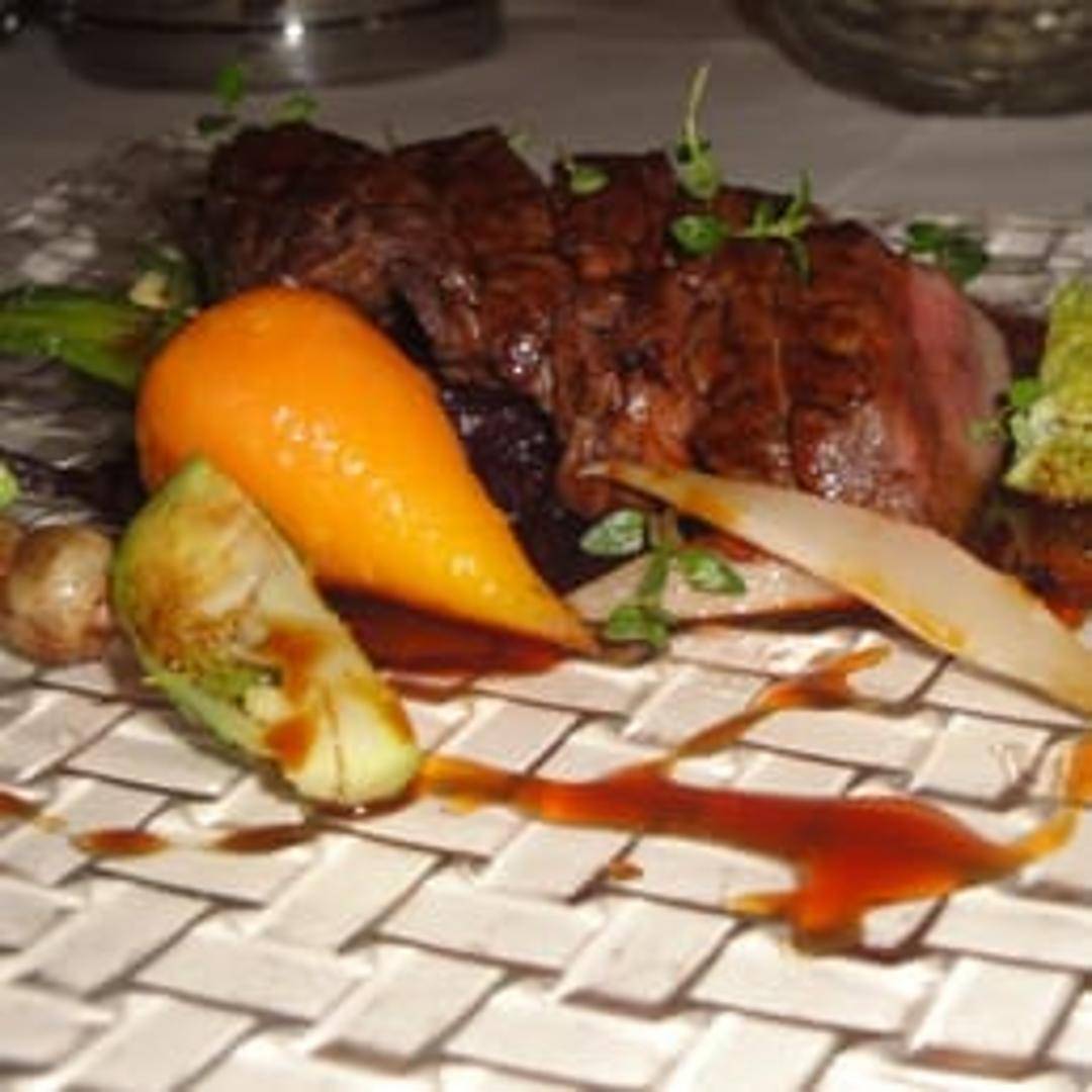 Tender venison striploin, expertly seared to perfection. Served with complementary seasonal accompaniments that enhance the rich, gamey flavor of the venison. Expect a refined presentation with thoughtfully balanced textures and tastes.