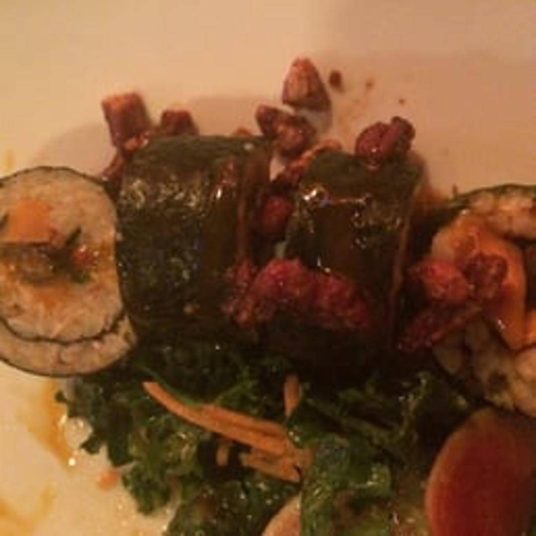 Experience an innovative plant-based take on a Japanese classic. Our Tofu Sashimi features exquisitely thin slices of exceptionally smooth and delicate tofu, meticulously pressed and prepared to achieve a melt-in-your-mouth texture. Served chilled with traditional accompaniments such as a nuanced soy-ginger dipping sauce and pickled daikon, offering a sophisticated and refreshing culinary adventure.