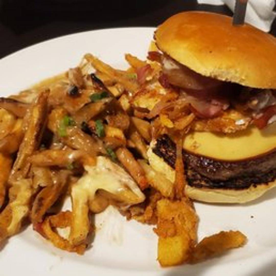 A juicy burger featuring a perfectly cooked beef patty, topped with crispy bacon, melted cheddar cheese, fresh lettuce, ripe tomato, and our signature phenomenal sauce, all served on a toasted brioche bun.