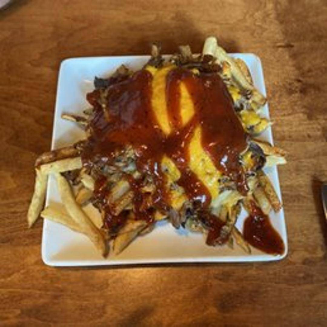 Crispy french fries smothered in slow-cooked Texas-style brisket, rich gravy, melted cheese curds, and topped with a drizzle of tangy BBQ sauce.