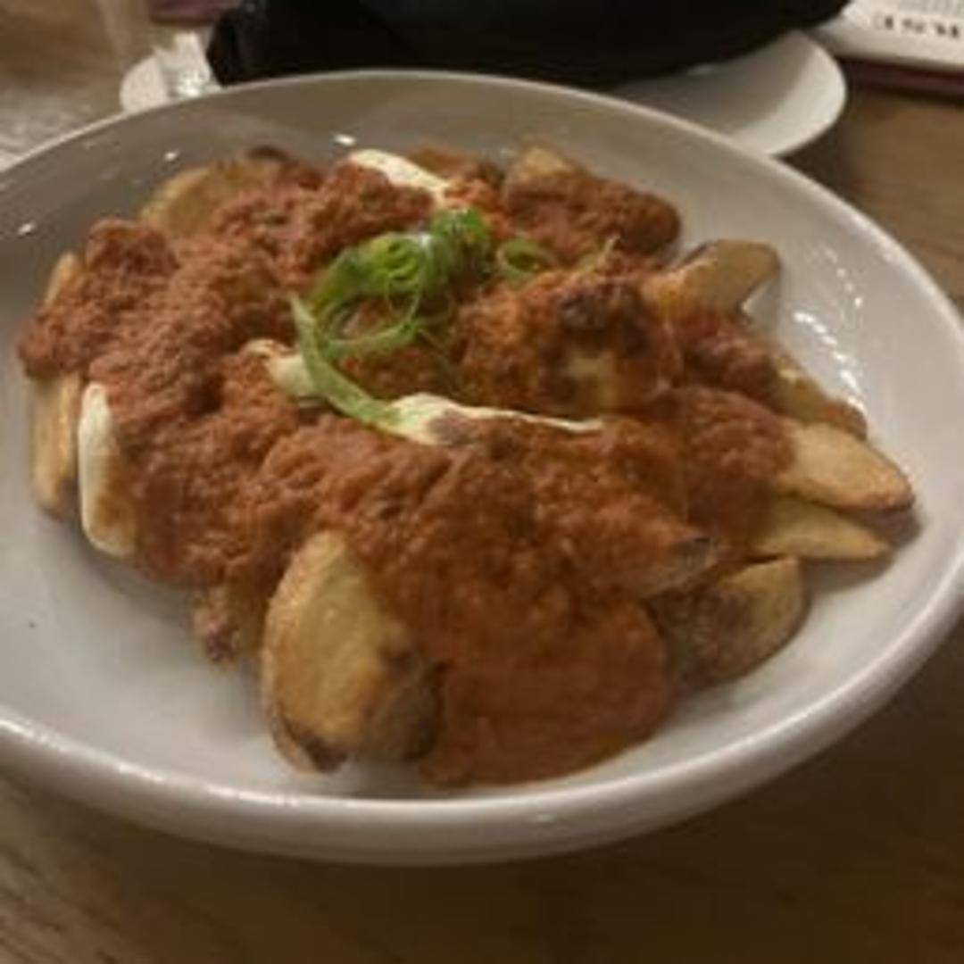 Crispy, golden fries smothered in a flavorful curry sauce.