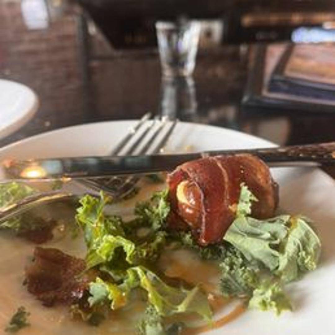 Medjool dates, pitted and stuffed with smoked almonds and creamy gorgonzola, then wrapped in crispy bacon and baked to perfection. A sweet, salty, and savory appetizer with a delightful textural contrast.