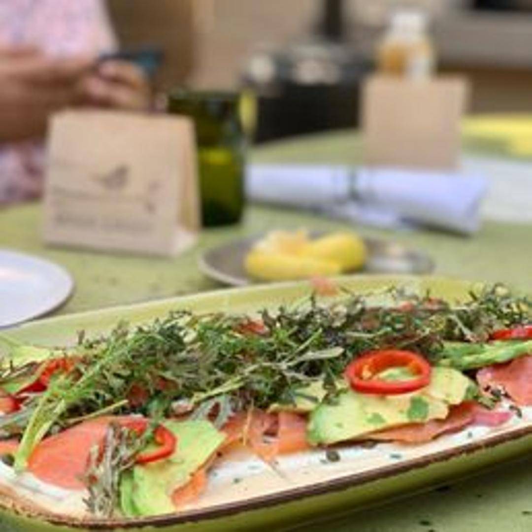 Crispy flatbread topped with creamy dill spread, thinly sliced smoked salmon, capers, red onion, and a sprinkle of fresh herbs.