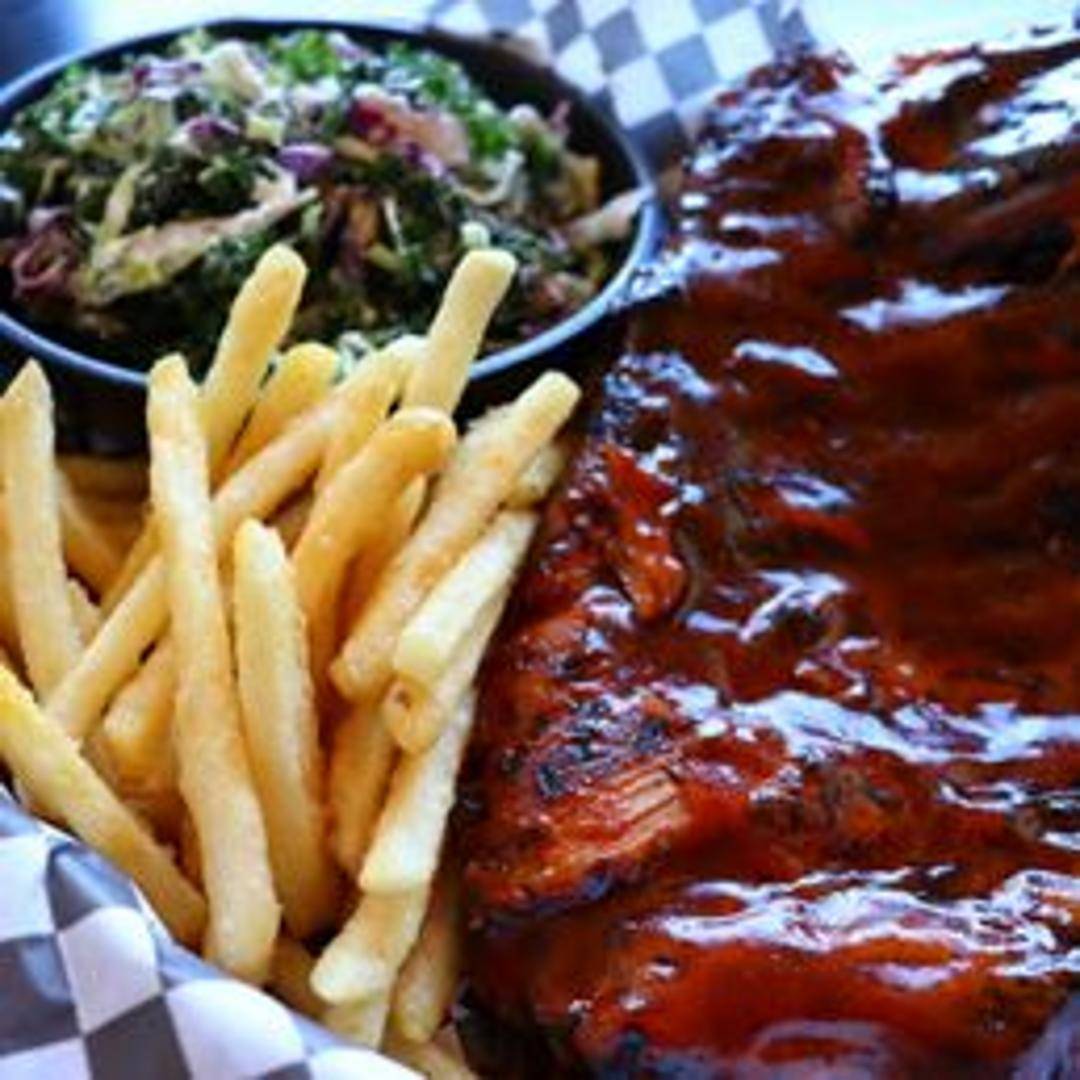 Slow-smoked ribs, seasoned with our signature dry rub and glazed with your choice of BBQ sauce. Served with your choice of two sides.