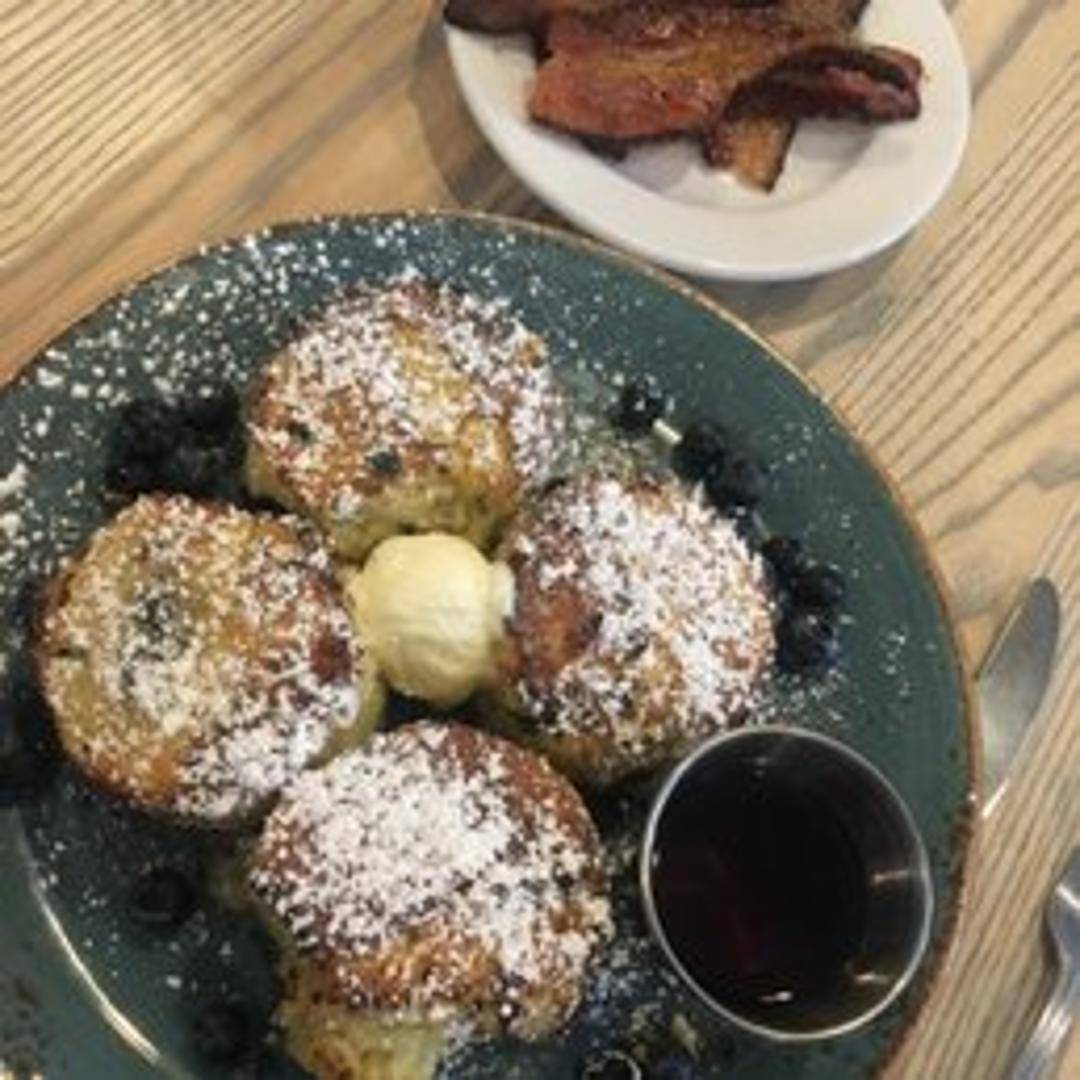 Fluffy silver dollar pancakes bursting with fresh blueberries. Served with your choice of real maple syrup or house-made blueberry compote. A classic breakfast favorite.