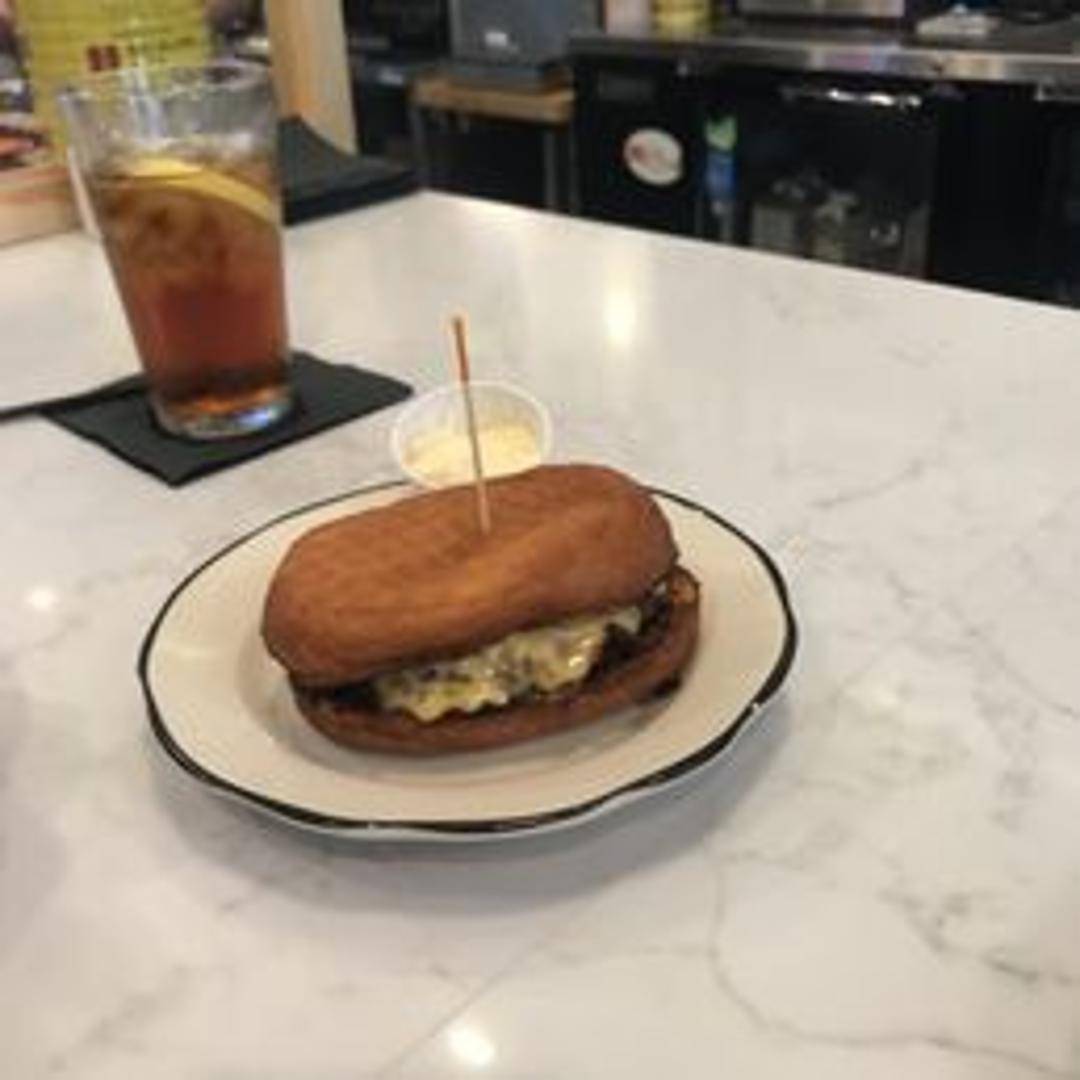 Indulge in The Governor Modern Diner's signature cheeseburger, crafted with a perfectly seasoned, juicy beef patty, flame-grilled to your preferred doneness. Nestled on a toasted brioche bun, each burger is crowned with your choice of rich American, sharp cheddar, or creamy Swiss cheese, melted to perfection. Accompanied by crisp lettuce, ripe tomato slices, thinly sliced red onion, and tangy dill pickles, this classic diner staple offers a satisfying and customizable experience for every palate.