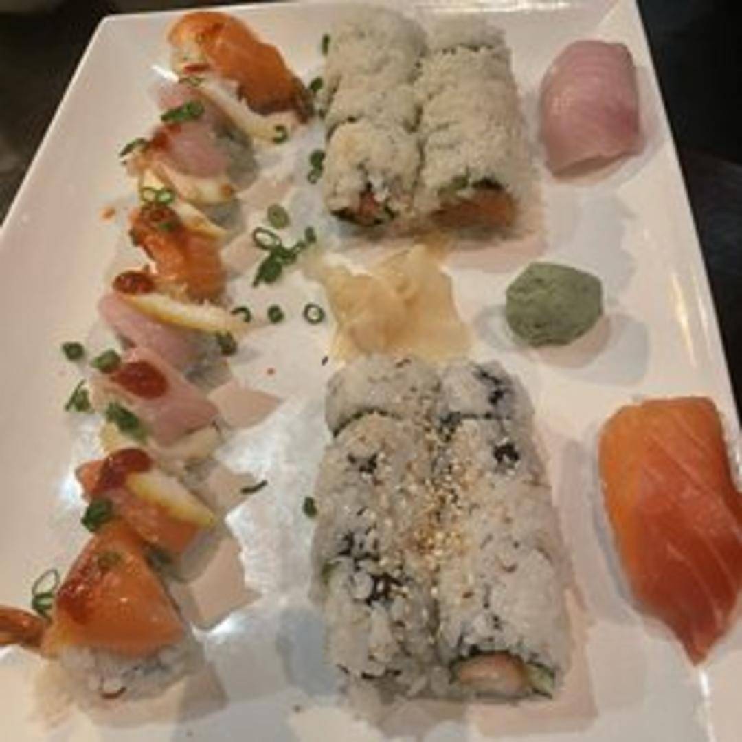 Classic sushi roll with imitation crab, avocado, and cucumber, rolled in sushi rice and nori seaweed.