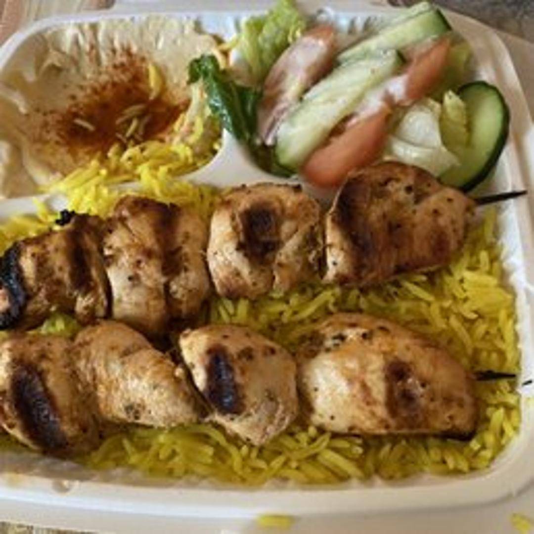 Tender cubes of marinated lamb, grilled to perfection and served on a plate with your choice of sides.