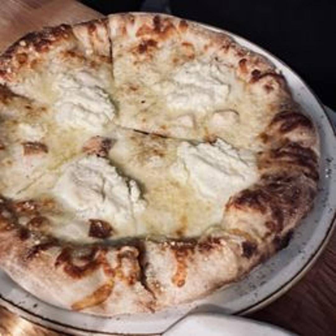 A classic white pizza featuring a creamy blend of cheeses, garlic, and herbs on a crispy crust. Often featuring ricotta, mozzarella, and parmesan.