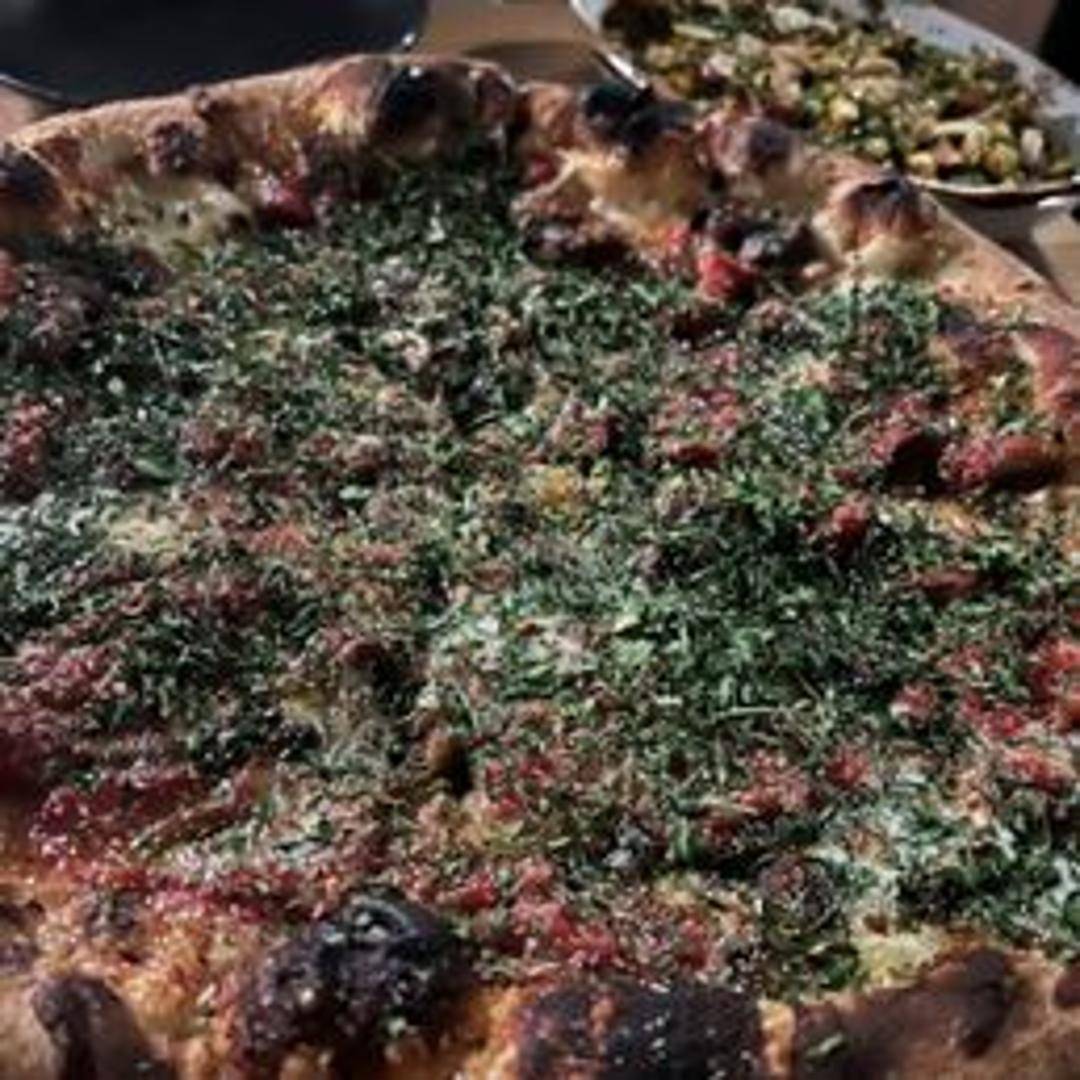 An earthy pizza featuring a variety of roasted mushrooms, often combined with a blend of cheeses, garlic, and herbs on a crispy crust.