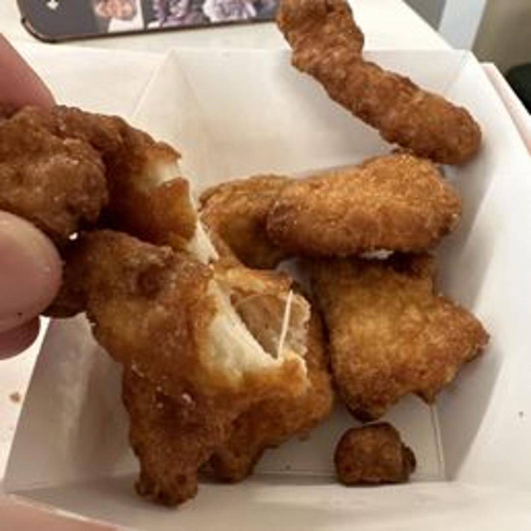 Crispy, golden-brown chicken nuggets, perfect for snacking or as a side. Made with tender chicken and lightly breaded.