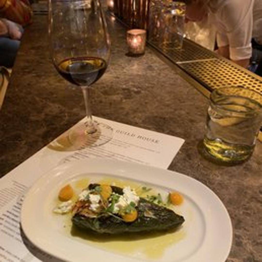 A vibrant poblano pepper, generously filled with a flavorful blend of seasoned ground beef, roasted corn, black beans, and Monterey Jack cheese. Baked until golden and served with a zesty cilantro-lime crema.