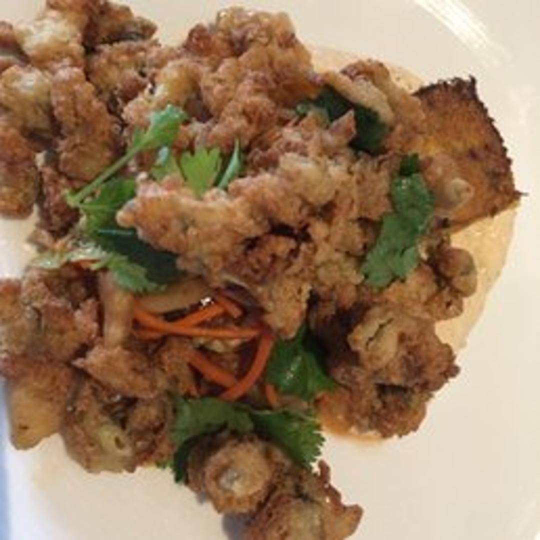 A New Orleans classic, featuring crispy, golden-fried Ipswich clams piled high on a toasted Leidenheimer baguette. Dressed with shredded lettuce, sliced tomatoes, tangy pickles, and a creamy remoulade sauce.