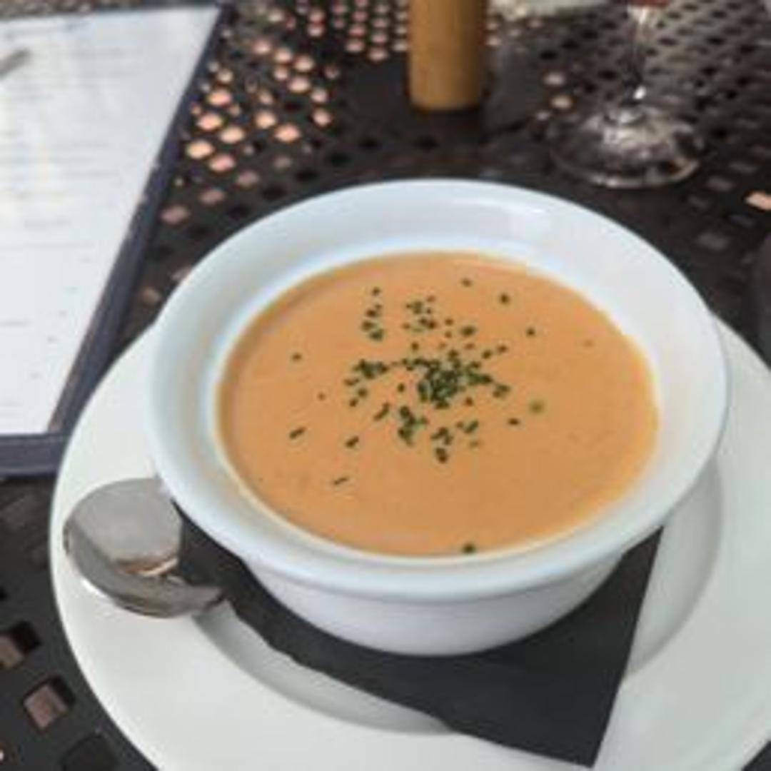 A rich and creamy lobster bisque, infused with the delicate flavor of lobster. Simmered with aromatic vegetables, cream, and a touch of sherry. Garnished with a swirl of cream and a sprinkle of chives. A decadent and warming soup, perfect as a starter or a light meal.