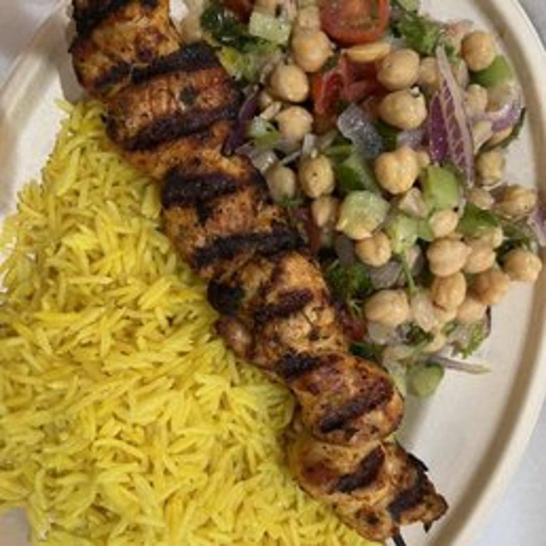 Slow-roasted, expertly carved chicken served on a bed of fragrant rice. Comes with a side of crisp lettuce, juicy tomatoes, sliced onions, and your favorite sauce.