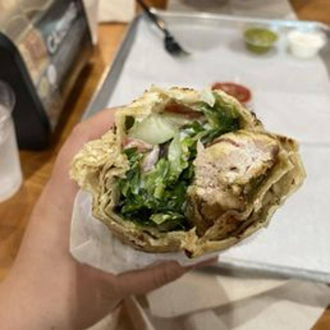 Skewered and grilled chicken kebab, marinated in a flavorful blend of spices. Served in a warm pita bread with fresh lettuce, ripe tomatoes, thinly sliced onions, and your selection of sauce.