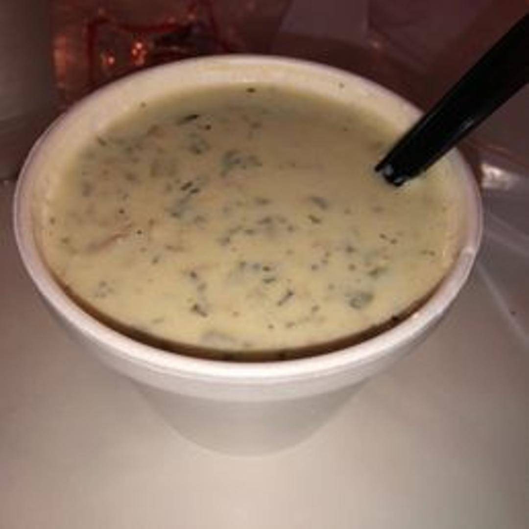 A creamy and comforting soup filled with tender clams, potatoes, and celery, seasoned with classic spices.