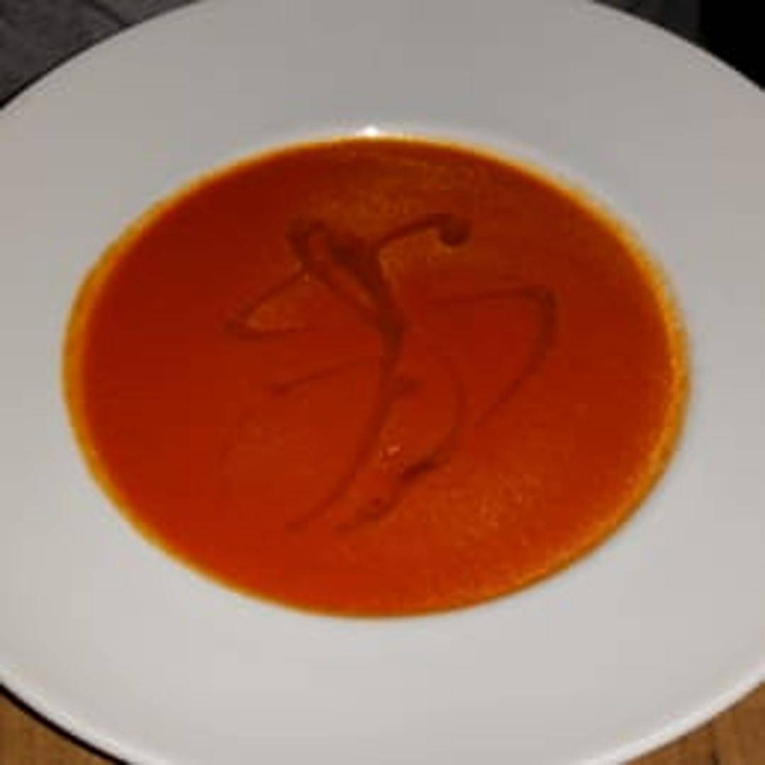 Creamy tomato soup made with roasted tomatoes, fresh basil, and a touch of cream. Served with grilled cheese croutons.