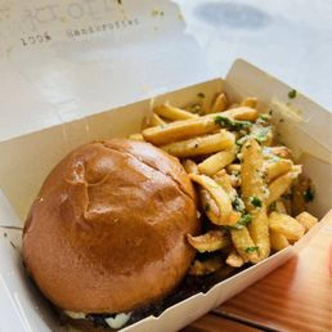 A juicy Wagyu beef patty smashed thin and cooked to perfection, topped with melted spicy Jack cheese, crisp lettuce, ripe tomato, sliced onion, and a fiery signature sauce, all served on a toasted brioche bun.