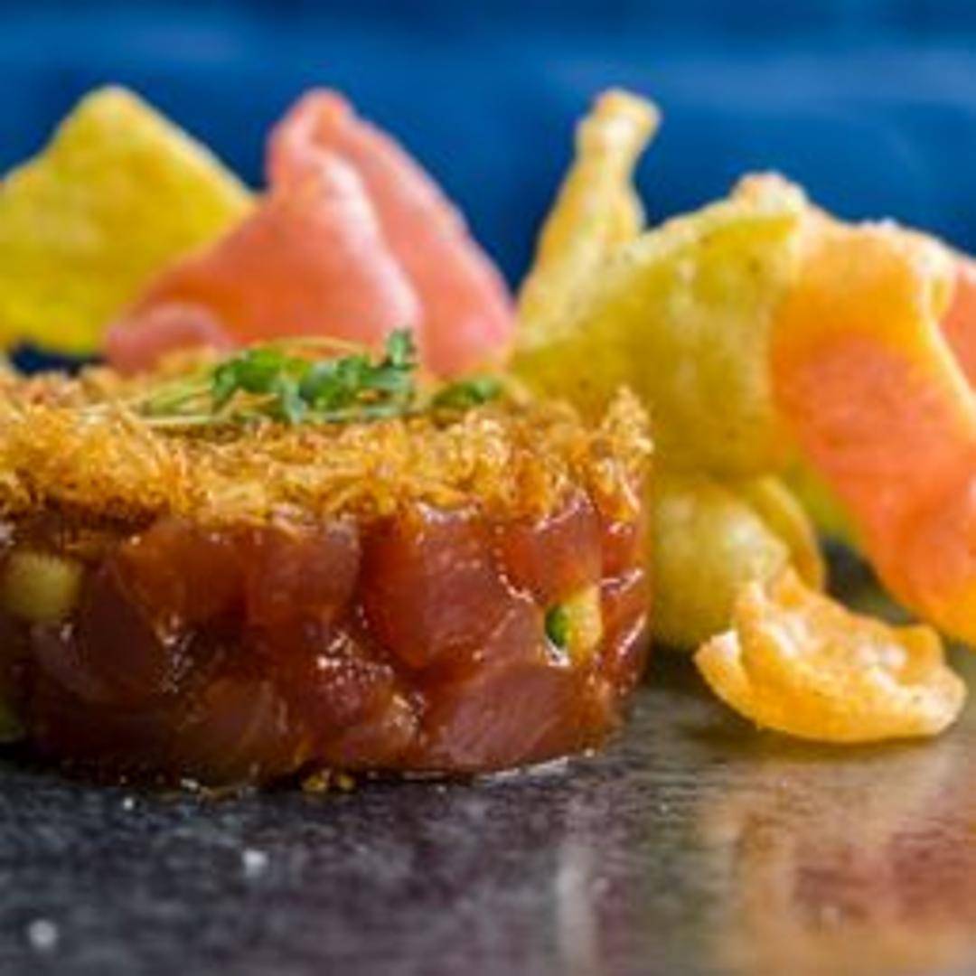 Finely diced sushi-grade Ahi tuna, delicately seasoned with a hint of citrus, soy, and sesame oil, complemented by creamy avocado and fresh cilantro. Served artfully with crispy wonton chips for a delightful texture contrast.