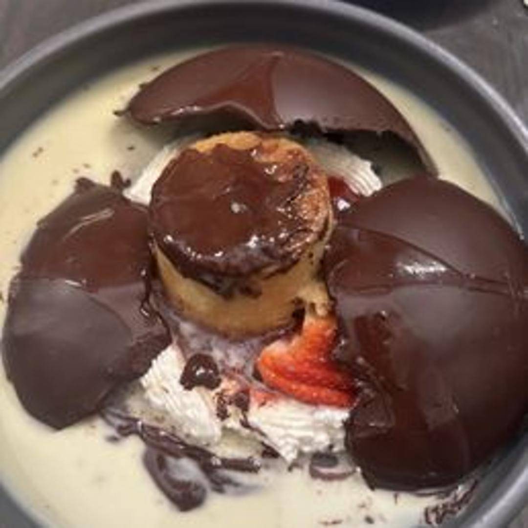 A rich and decadent cake, infused with butter, offering a moist and tender crumb, typically served warm.