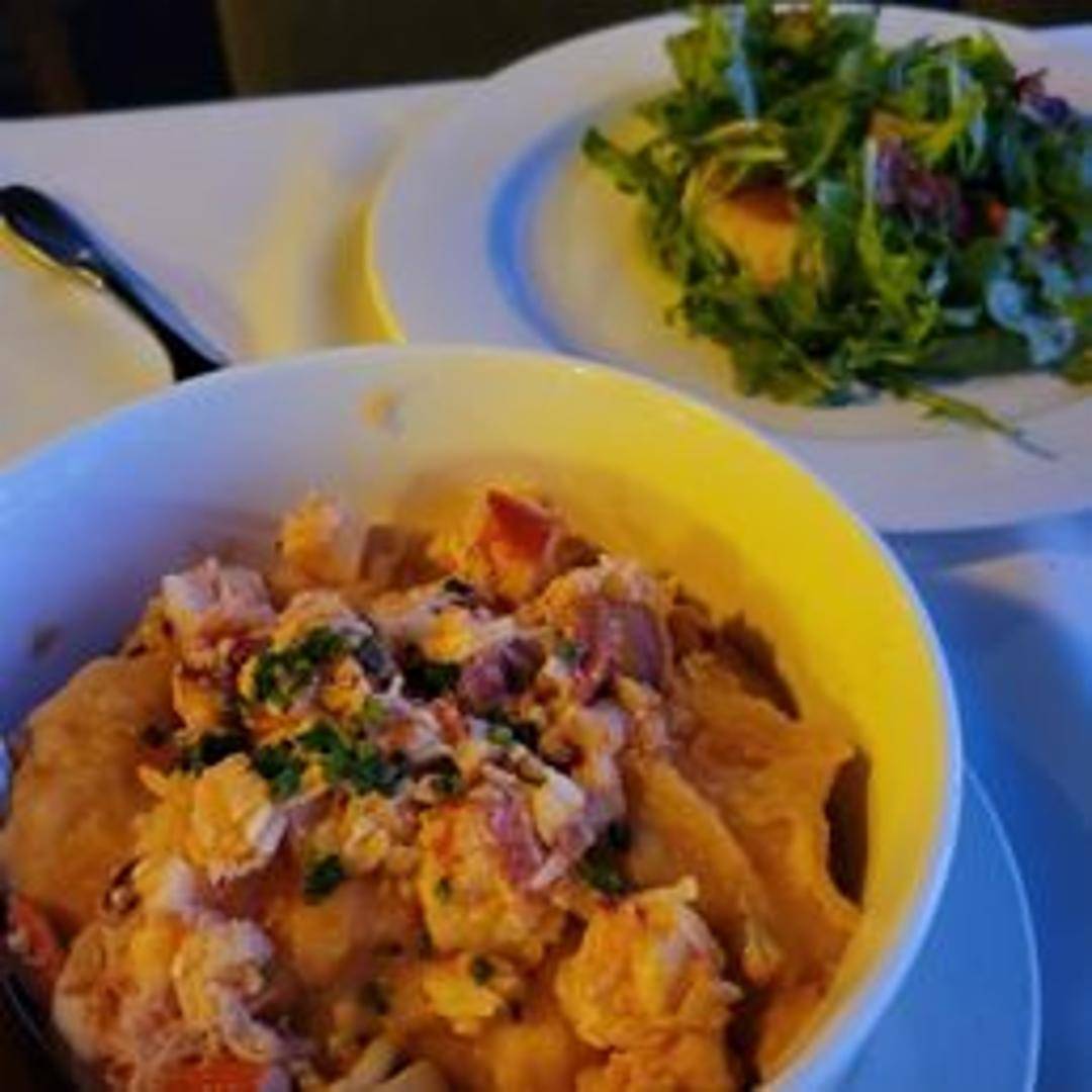 Pan-seared Dungeness crab cakes with a golden-brown crust, showcasing sweet and delicate crab meat. Served with a tangy remoulade sauce and a refreshing side salad.
