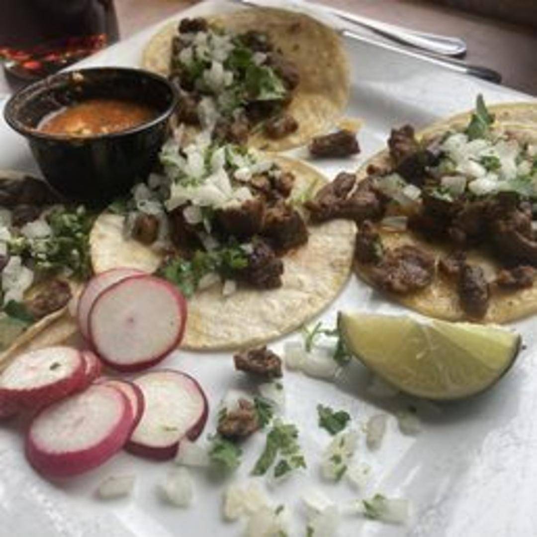 Small corn tortillas filled with your choice of meat (specify options: carne asada, al pastor, chicken, etc.). Garnished with diced onions, cilantro, and salsa.