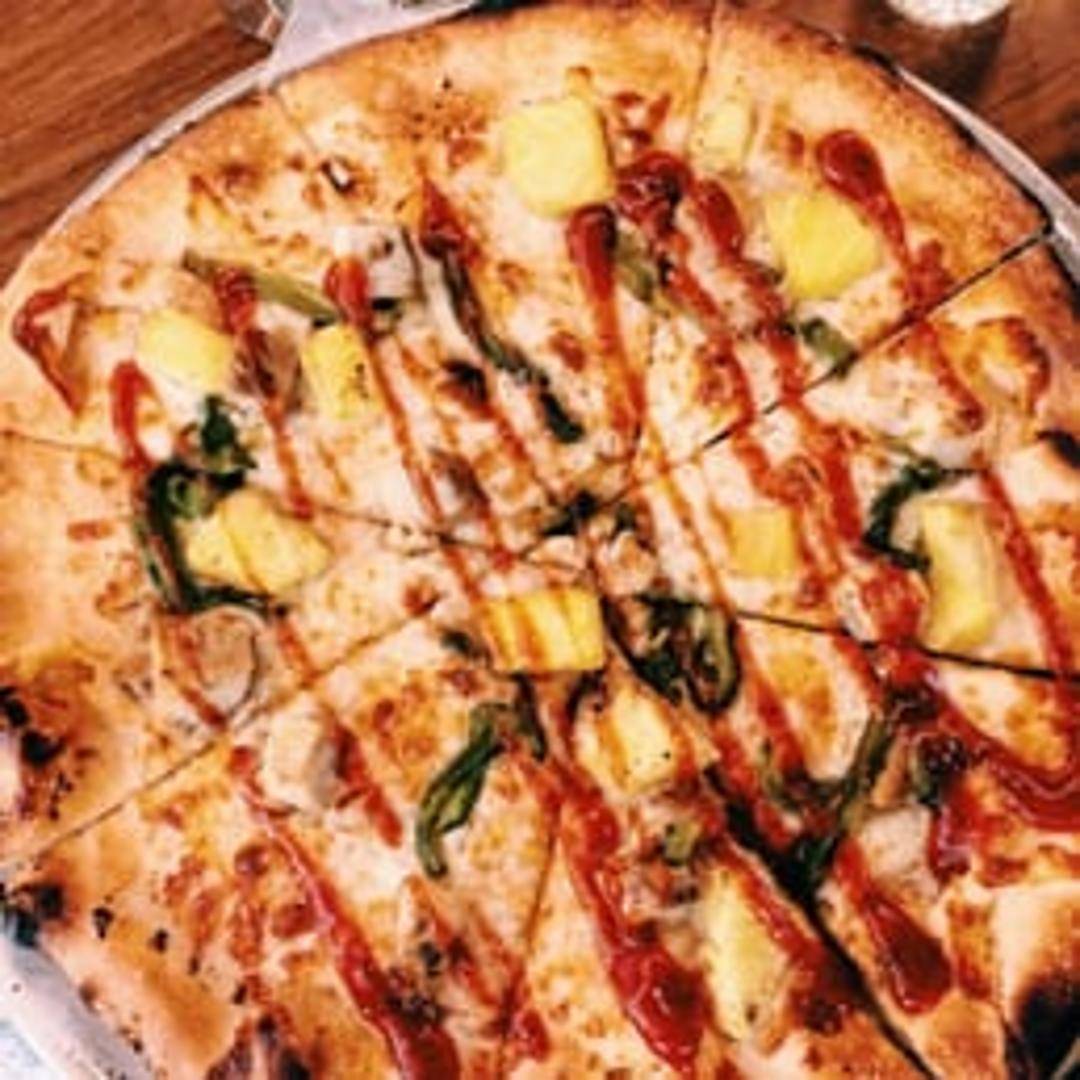 An artisanal pizza featuring tender, slow-roasted pork belly with a crisp exterior, meticulously arranged over a robust tomato base or a rich, creamy white sauce. It is generously topped with a blend of premium mozzarella and provolone cheeses, often complemented by caramelized onions, fresh herbs like cilantro or scallions, and a drizzle of a sweet and tangy glaze or a spicy aioli to enhance its savory depth. This pizza offers a luxurious combination of textures and bold flavors, perfect for a hearty and satisfying meal.