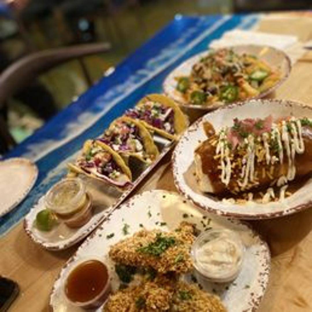 Two soft tacos filled with grilled or battered fish, shredded cabbage, pico de gallo, and a creamy chipotle sauce. Served with a side of rice and beans.