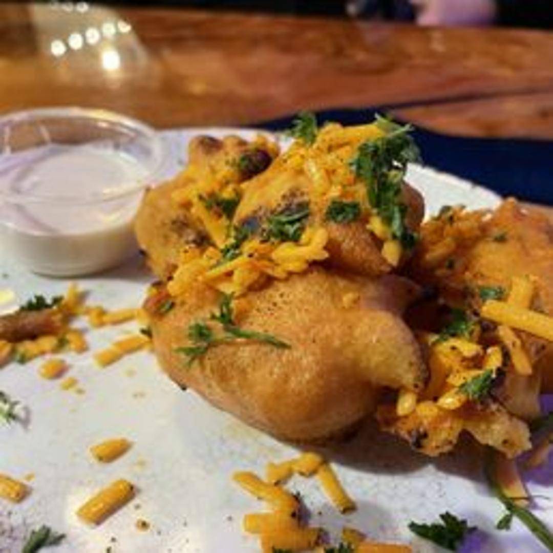 Crispy, golden-brown fritters made from creamy, Southern-style grits infused with cheddar cheese. Served with a side of tangy dipping sauce.
