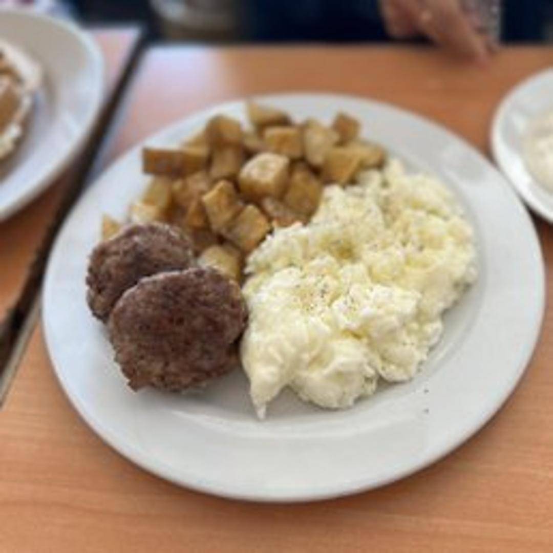 Three eggs cooked your way, served with your choice of bacon or sausage, and toast.