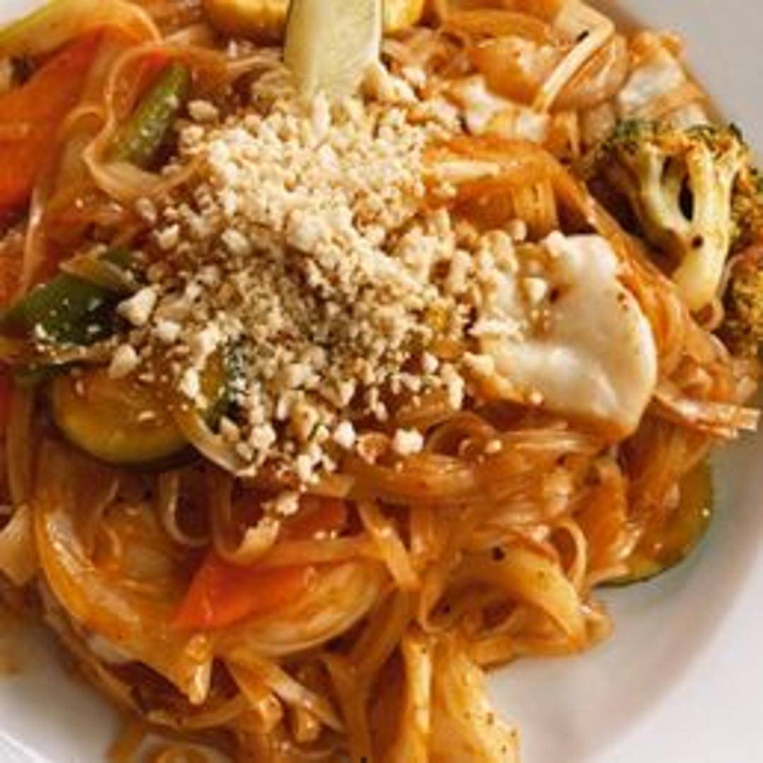 Classic Thai stir-fried rice noodles with your choice of protein, tossed in a tangy tamarind sauce, and mixed with egg, bean sprouts, peanuts, and scallions.