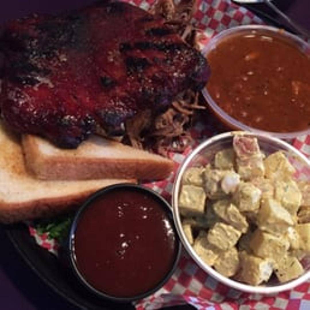 Tender, slow-smoked turkey. Available by the pound or as a plate with two sides and Texas toast.