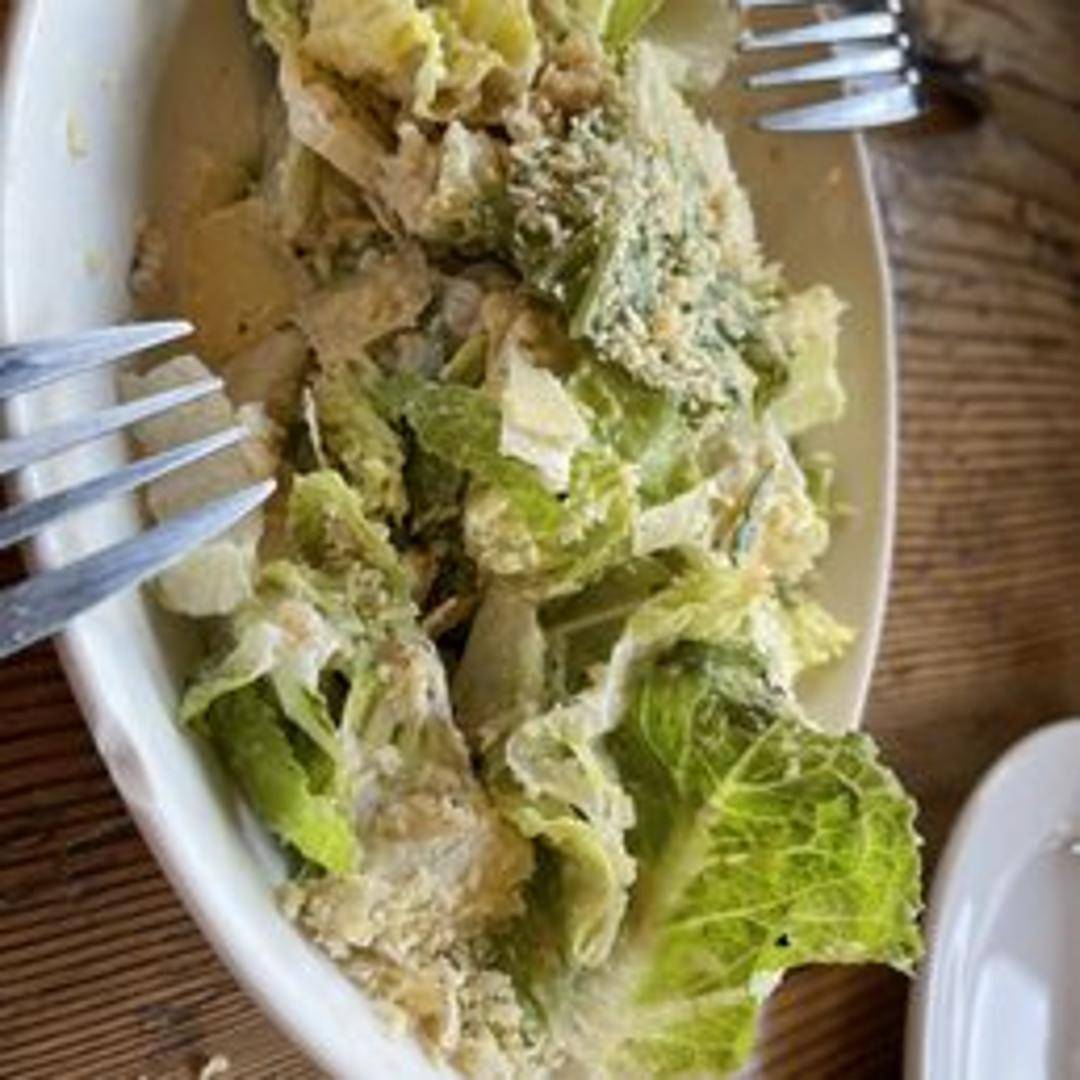 Classic Caesar salad with crisp romaine lettuce, Parmesan cheese, croutons, and a creamy Caesar dressing.