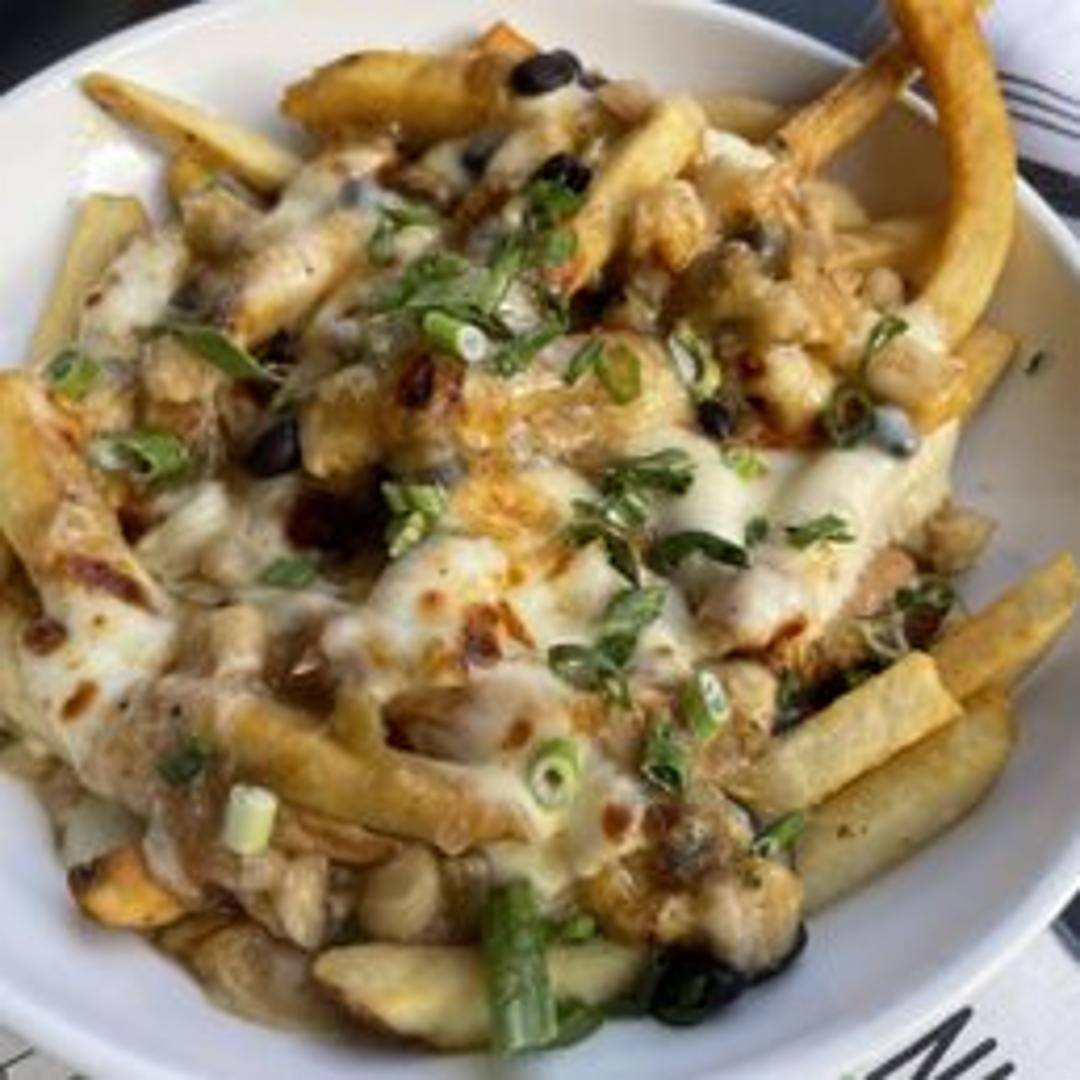 Crispy fries topped with house-made green chili, cheese curds, and your choice of protein (pork, brisket, or vegetarian).