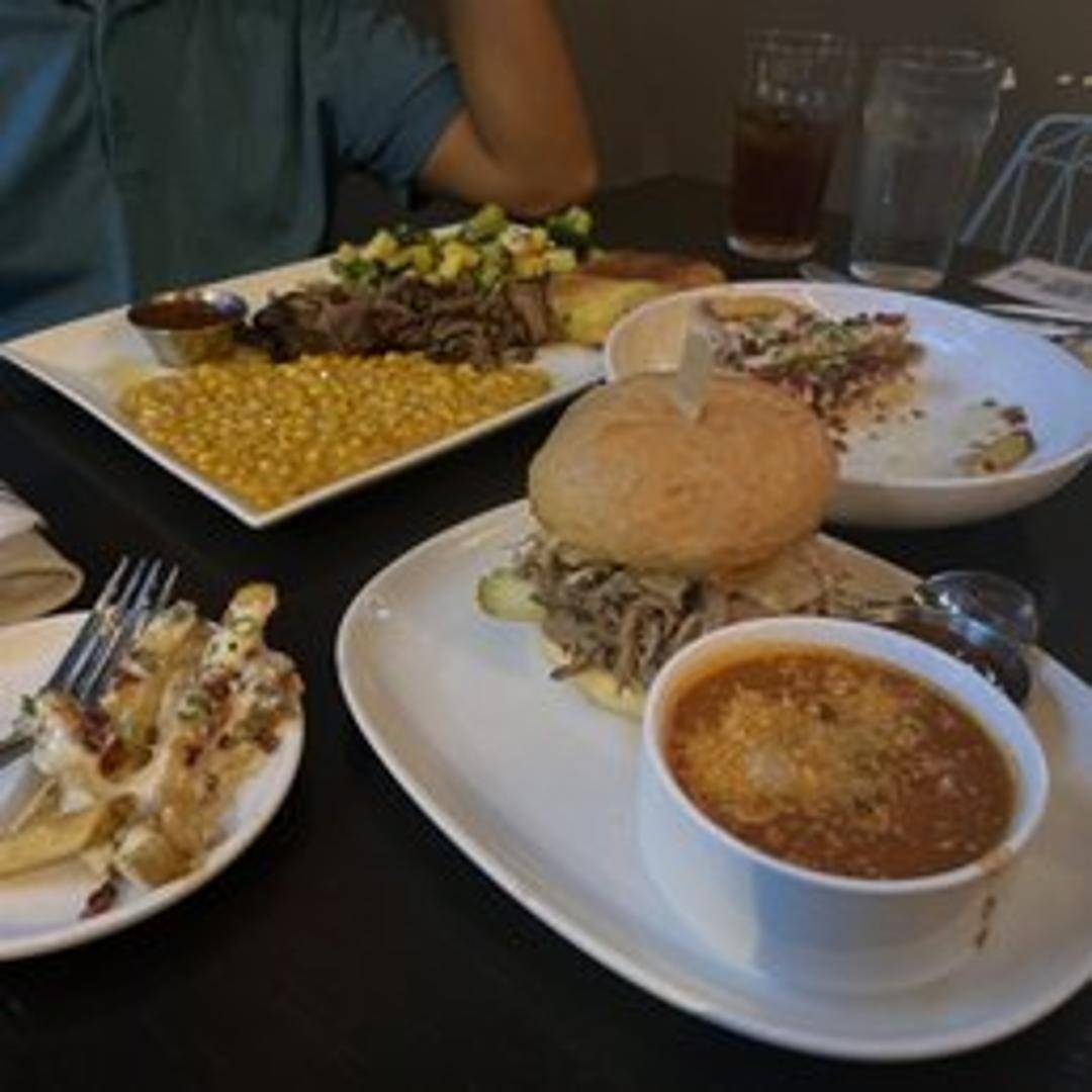 Slow-smoked pulled pork served on a toasted bun with coleslaw and your choice of BBQ sauce. Comes with choice of side.