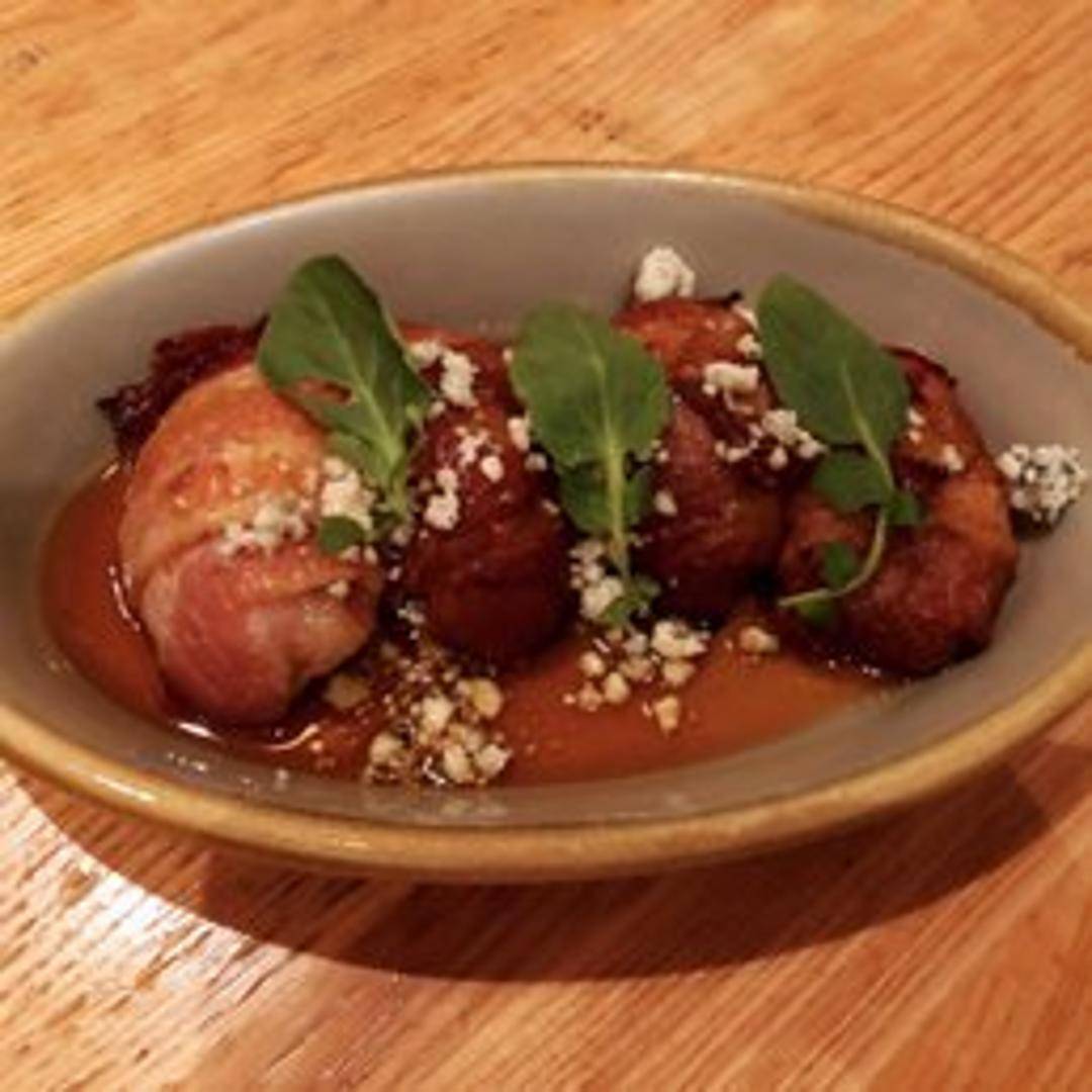 Sweet, juicy peaches, often roasted or grilled to intensify their natural sugars, expertly wrapped in savory strips of crispy bacon. This creates a harmonious blend of smoky, salty, and sweet flavors with contrasting textures.